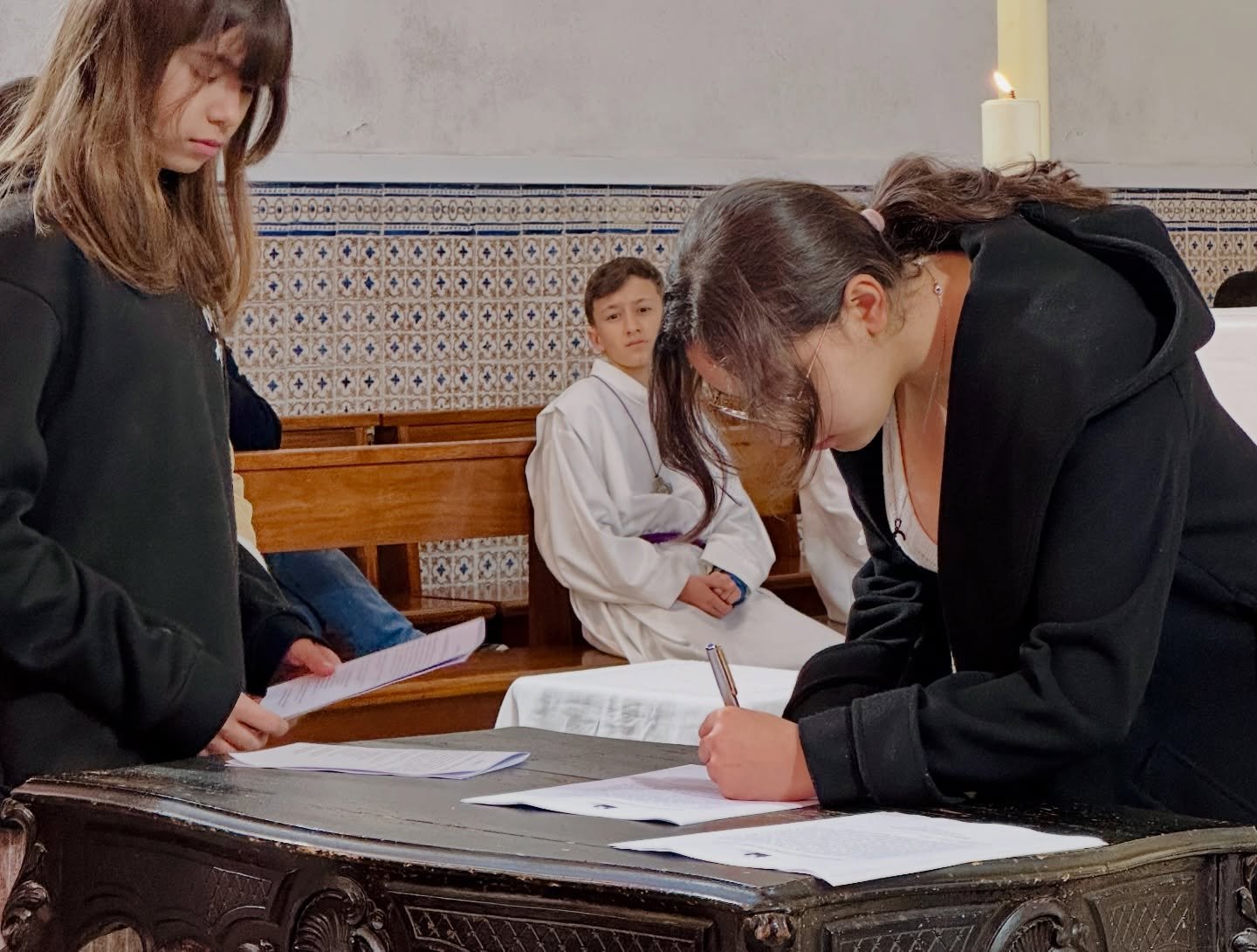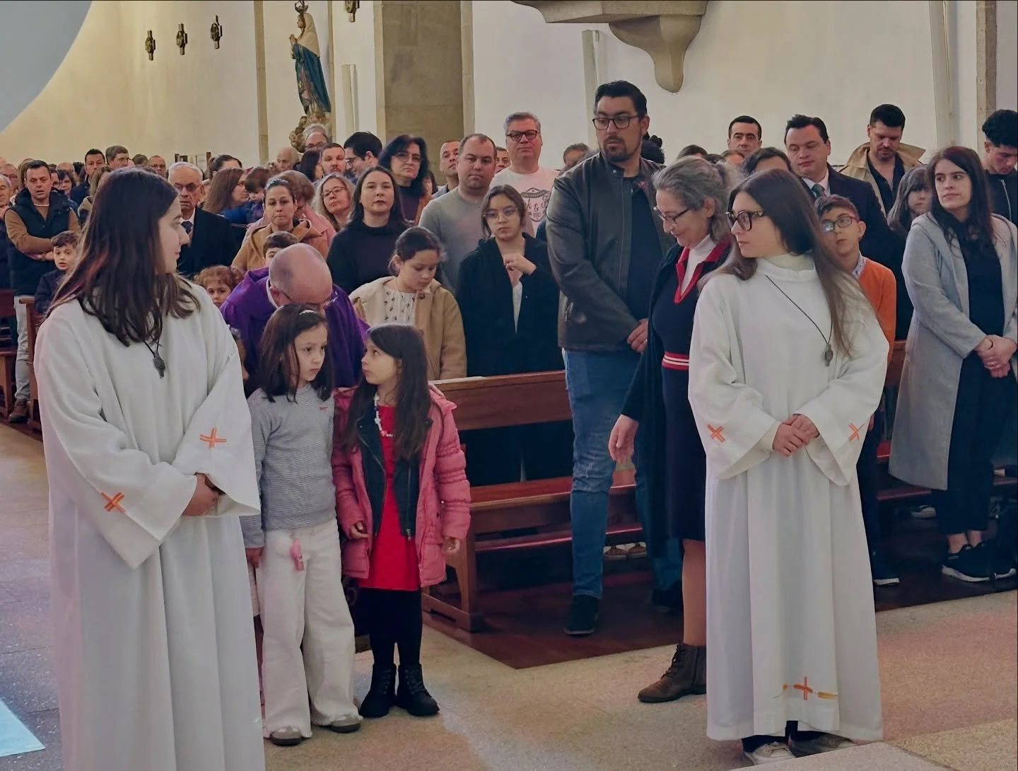 Dirigindo-se às crianças, o celebrante recordou o caminho já percorrido na catequese e nas celebrações, bem como a escuta da voz de Cristo ao longo desse percurso, desafiando-as a responder perante a Igreja sobre a vontade de receber os sacramentos do Batismo e da Eucaristia. Em uníssono, as crianças responderam afirmativamente: “Sim, queremos.”